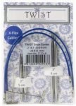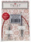Chiao Goo TWIST Short Combo packs contain one 2" (5 cm) and one 3" (8 cm) set of the same size tip as well as two cables allowing knitters to make 9" (23cm) - 12" (31cm) circulars. Red cables for sizes US0 - US3, and Blue cables for US4 - US8.